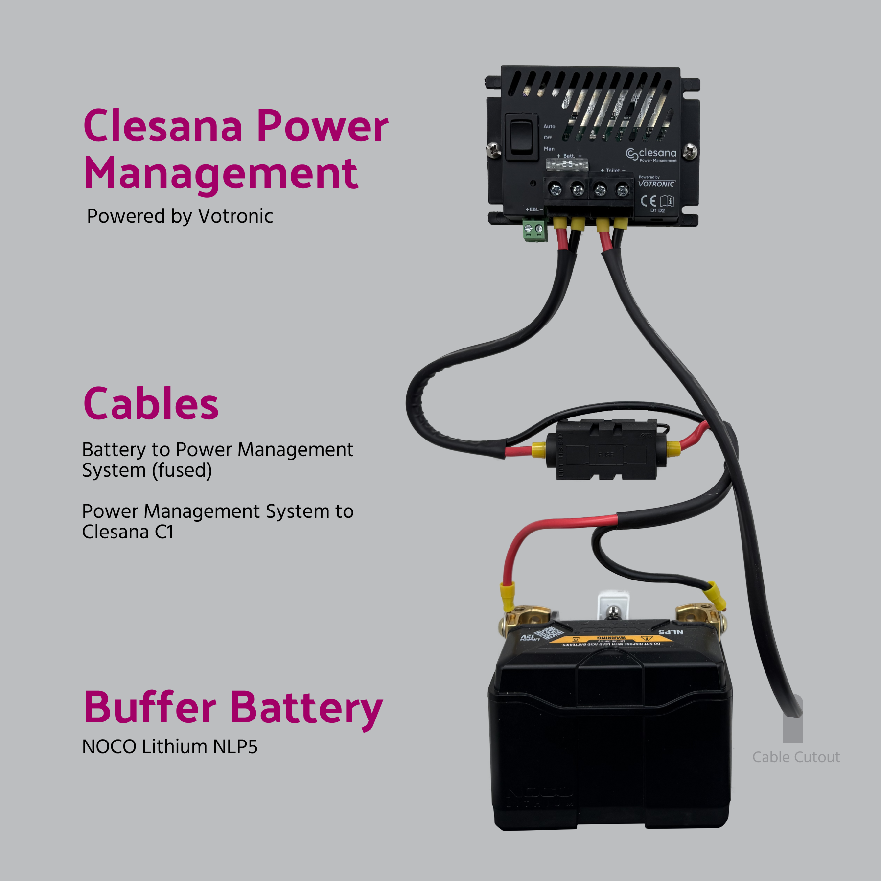 - NOCO Lithium NLP5 Battery for reliable power supply to Clesana C1 without upgrading 'house' cables